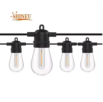 Shineu Courtyard Light S14 Black Shatterproof LED Bulb 48ft IP65 Waterproof Warm White Dimmable Outdoor Pendant Light String